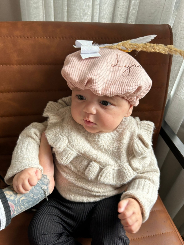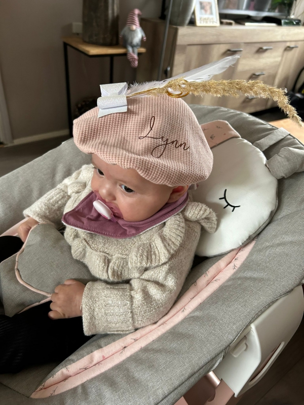Maak het eerste Sinterklaasfeest van je kleintje extra speciaal met deze schattige, gepersonaliseerde pietenmuts. De zachtroze muts is versierd met een lieve strik en een goudkleurige veer, en wordt speciaal voor jou bedrukt met de naam van je kindje. Dit maakt het niet alleen een feestelijk accessoire voor pakjesavond, maar ook een uniek aandenken voor later. De muts is gemaakt van zacht vilt voor een comfortabele pasvorm, perfect voor de mooiste Sinterklaasfoto's. Een onvergetelijke herinnering aan de eerste pakjesavond van je baby.De maten verschillen ongeveer 5 cm van elkaar.