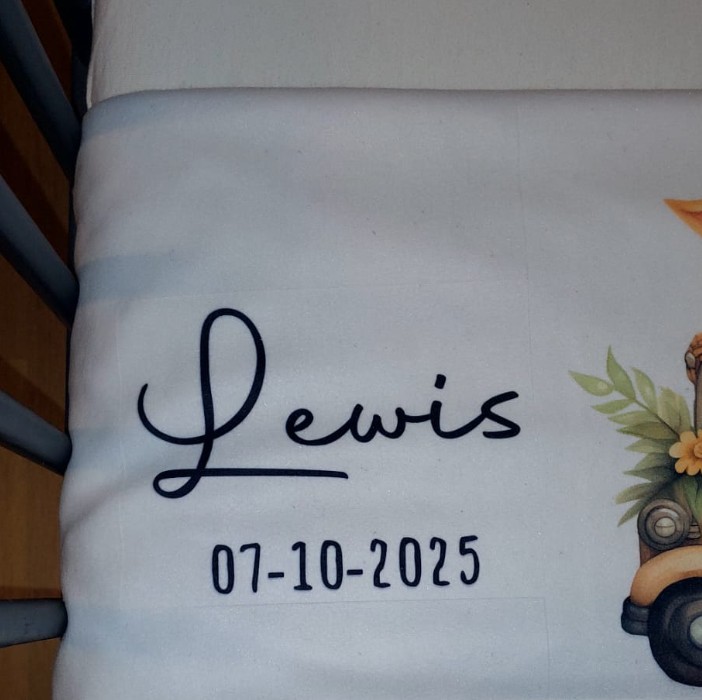 Wordt er geen datum ingevuld, wordt de deken met alleen de ingevulde naam bedrukt.