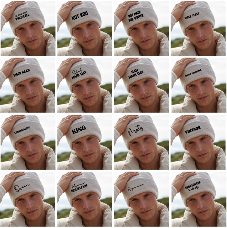 Beschikbaar in verschillende kleuren en lettertypen, zodat je jouw beanie helemaal naar wens kunt ontwerpen.