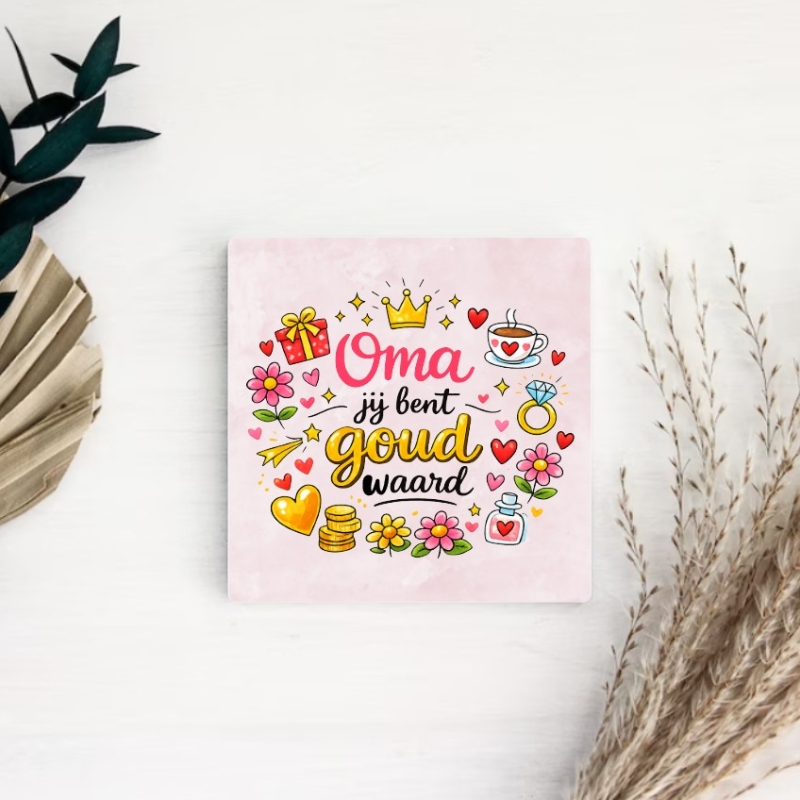 Een tegel met tekst of naam is een blijvend Moederdag cadeau. Met een lieve boodschap of grappige quote geef je mama een herinnering die ze altijd kan bewaren.