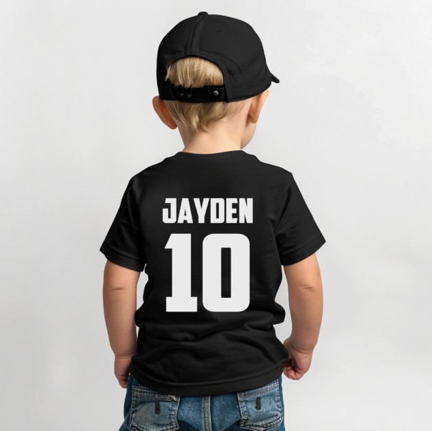 Kinder t-shirt bedrukt met naam & rugnummer