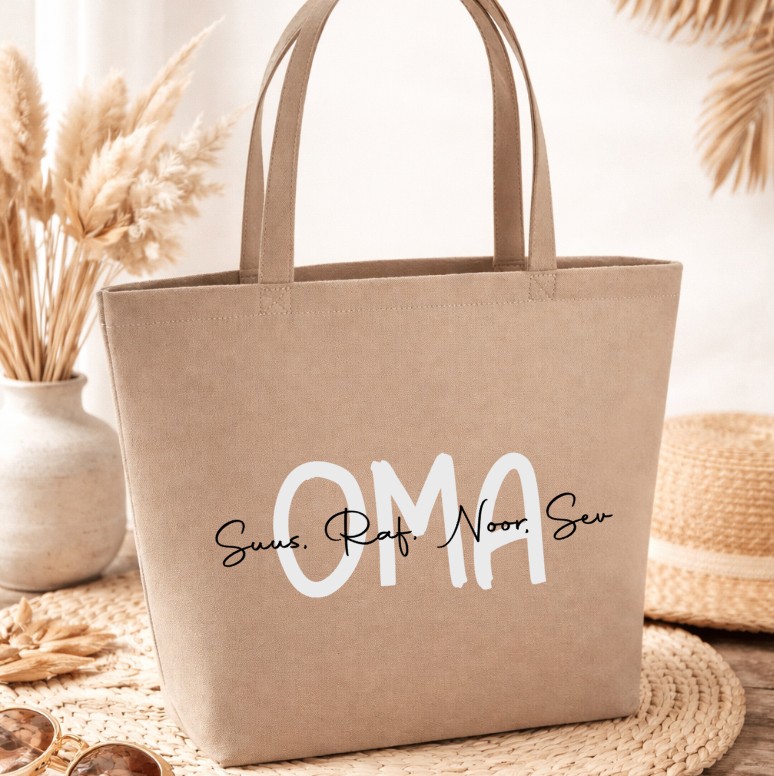 Tas bedrukken, Oma´s oppas tas, Tante´s oppas tas, Vilten tas bedrukken, Vilten tas, Viten tas met naam, Vilten tas met tekst, Vilten tas met eigen tekst, Tas met naam, Tas met tekst,