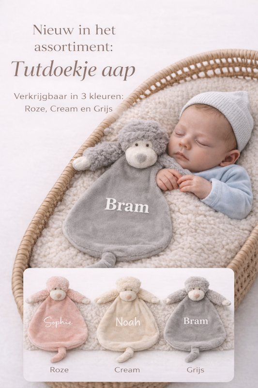 Tutdoekje aap | Kleur: Grijs| Met naam